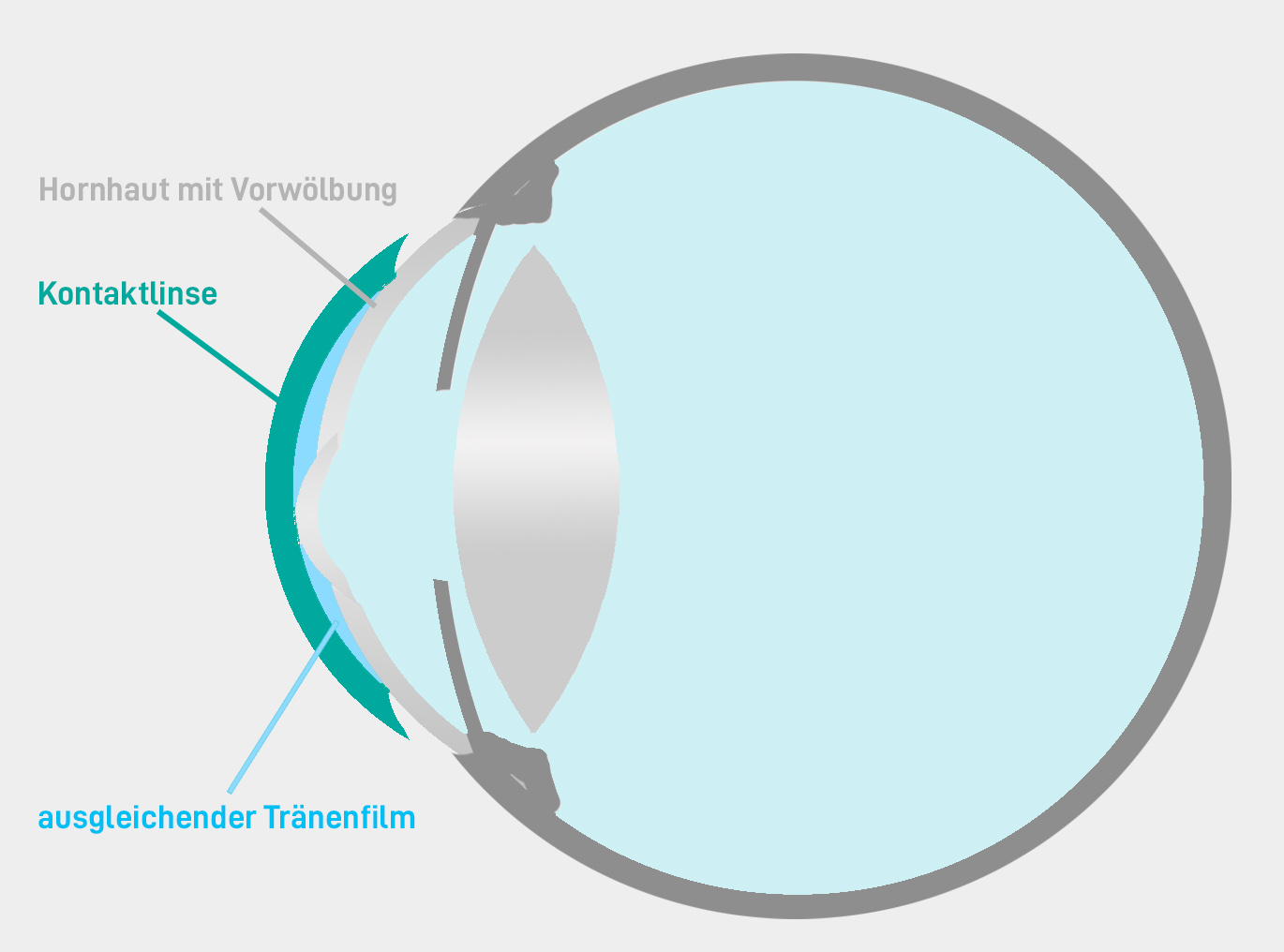 Normalerweise ist die Hornhaut kugelförmig gewölbt (sphärisch) und erhält so zusammen mit der Augenlinse die nötige Brechkraft um ein scharfes Bild im Auge zu erzeugen.